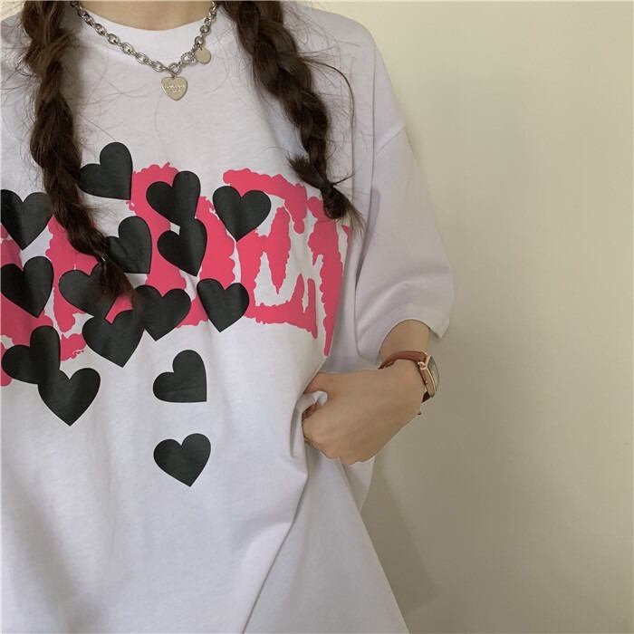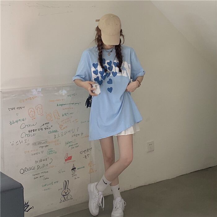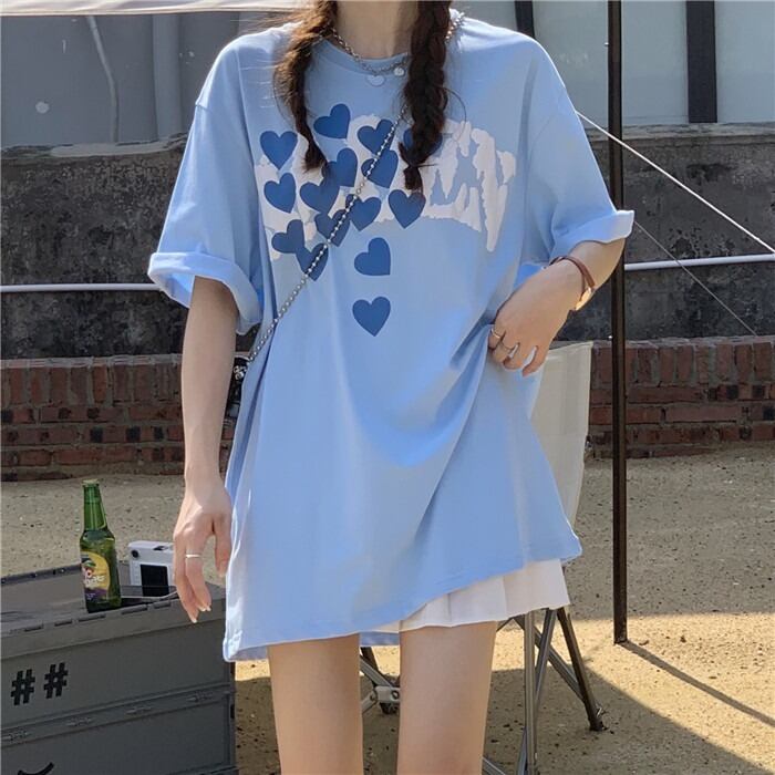 【韓国通販 dgo】2colors オーバーサイズ ハートフルT ブルー/ホワイト(W2282)