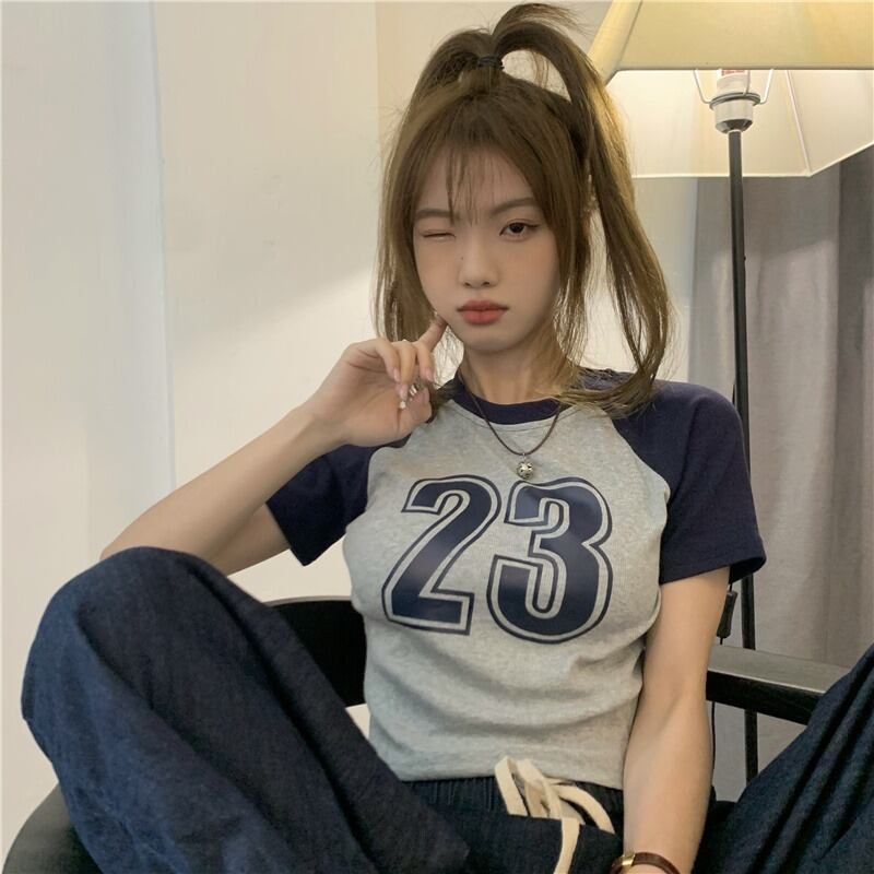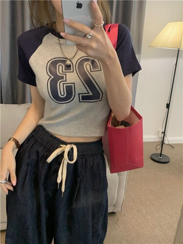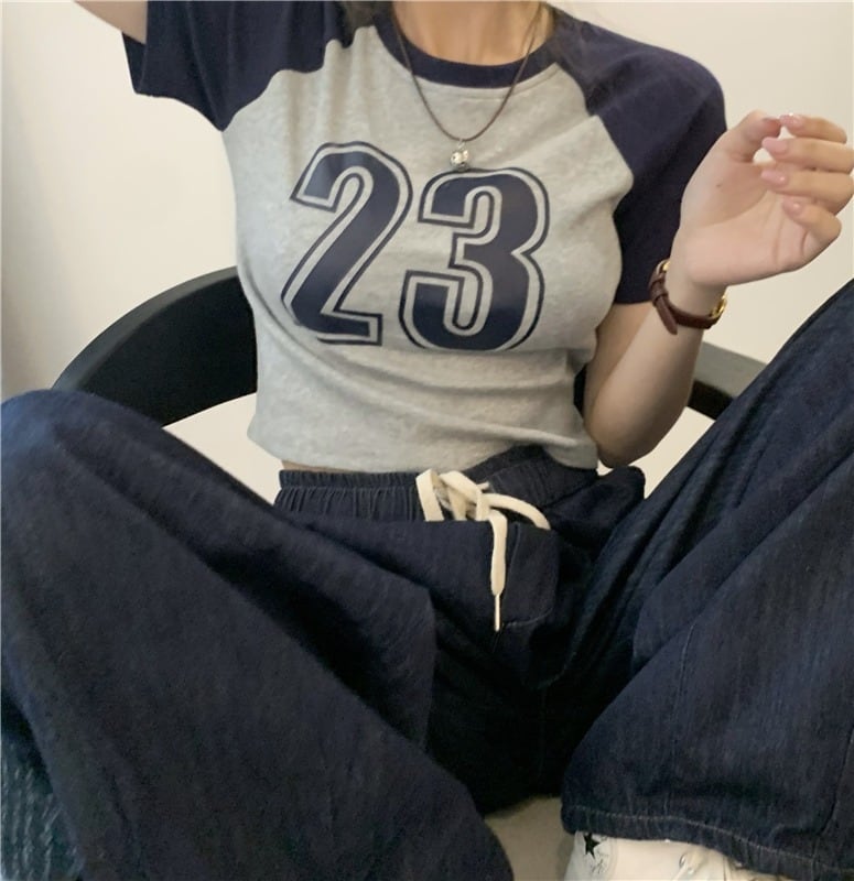 【韓国通販 dgo】クルーネックナンバーロゴTシャツ ブルー(W2272)
