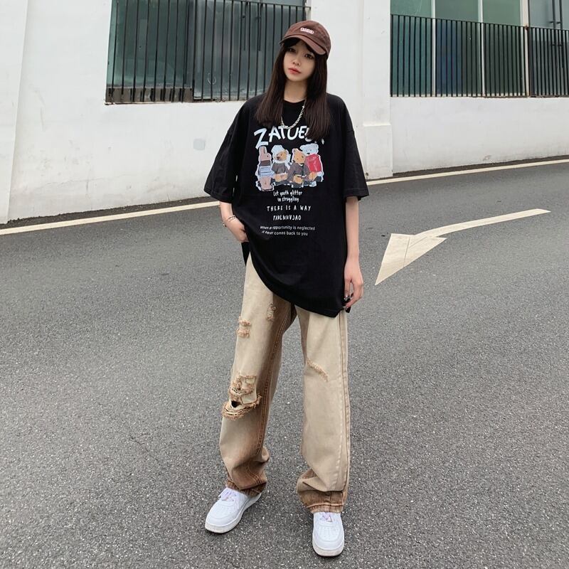 【韓国通販 dgo】2colors オーバーサイズ英レターアニマルプリントTシャツ ブラック/カーキ(W2271)