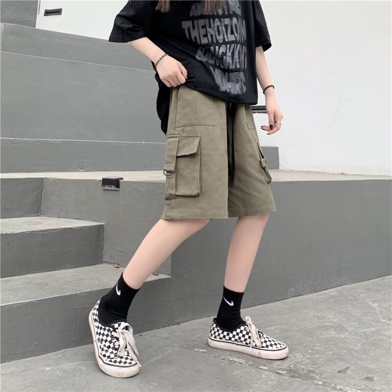 【韓国通販 dgo】3colors ストレートハーフカーゴパンツ カーキ/グリーン/ブラック(W2270)トレンドアイテム