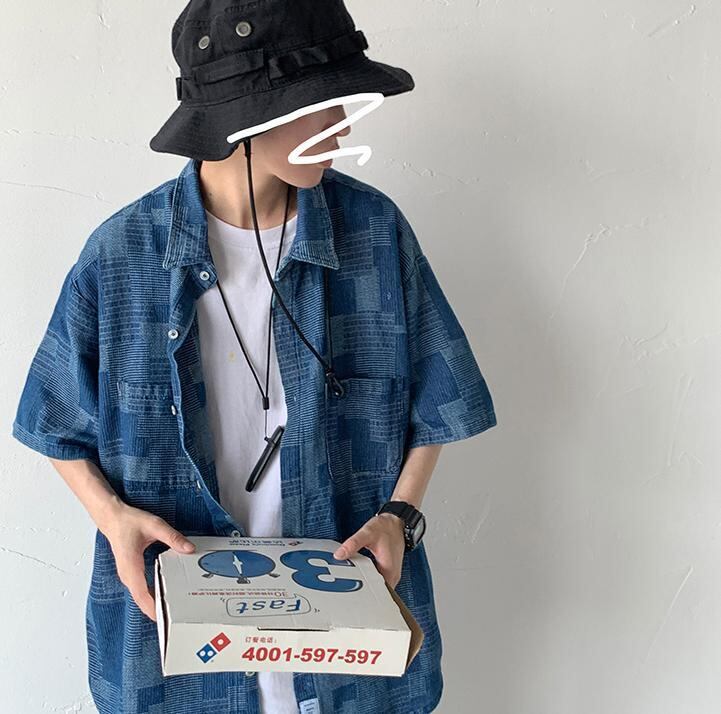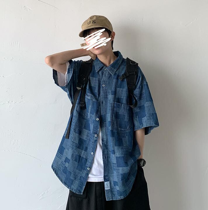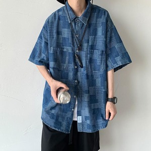 【韓国通販 dgo】2colors ヴィンテージチェック柄デニムシャツ ブルー/ブラック(M2580)センス溢れるファッションitem