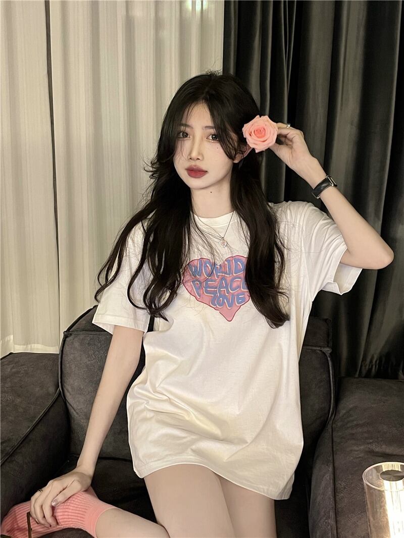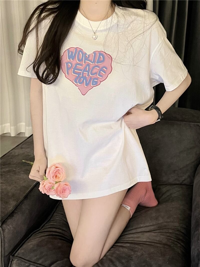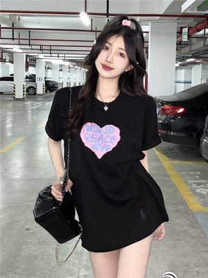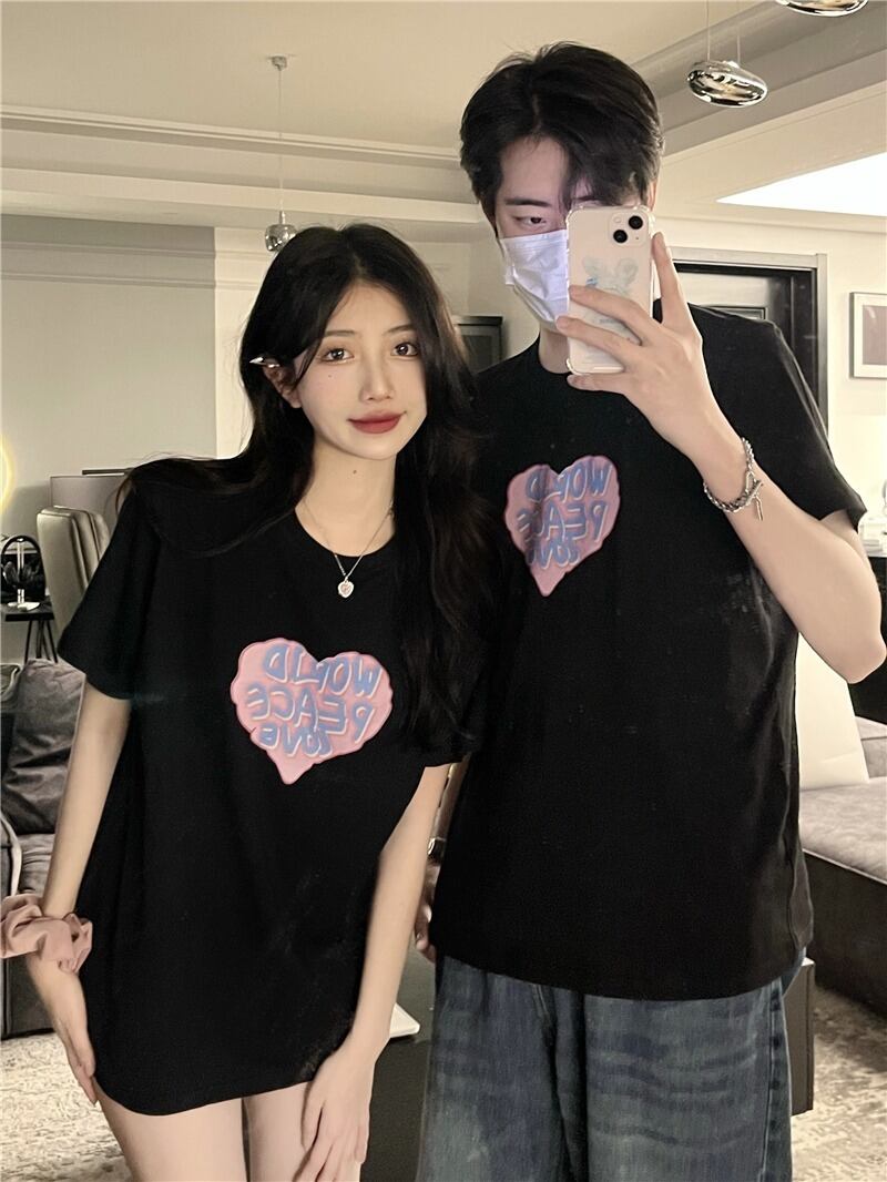 【韓国通販 dgo】2colors ユニセックス ハート英ロゴTシャツ 2types ホワイト/ブラック(M2598)