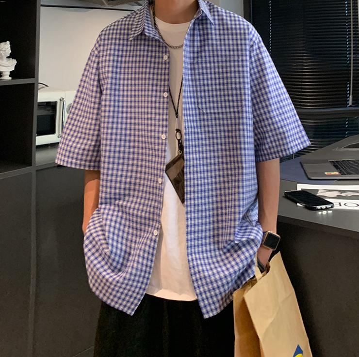【韓国通販 dgo】2colors オーバーサイズチェック柄シャツ ブルー/ブラック(M2602)