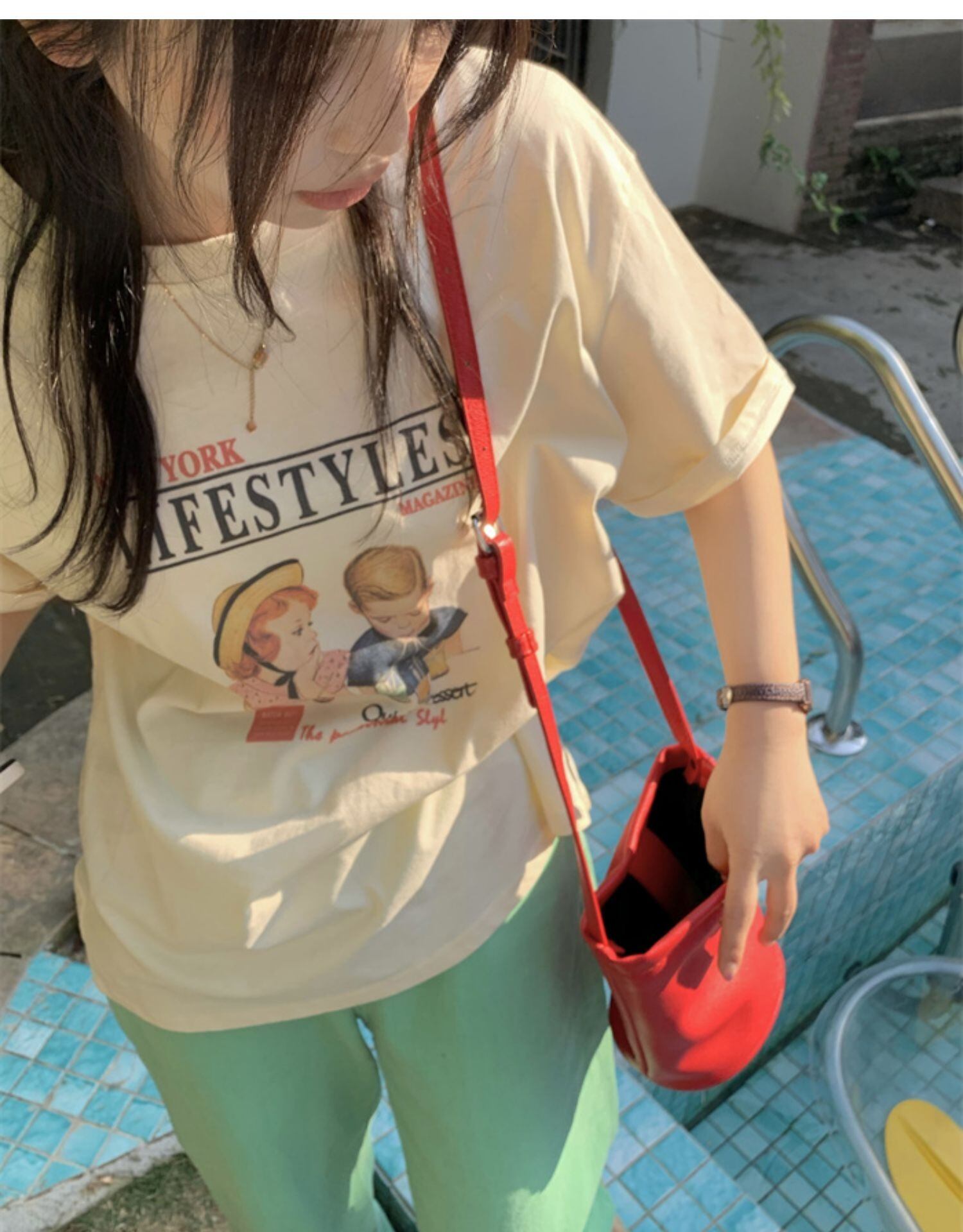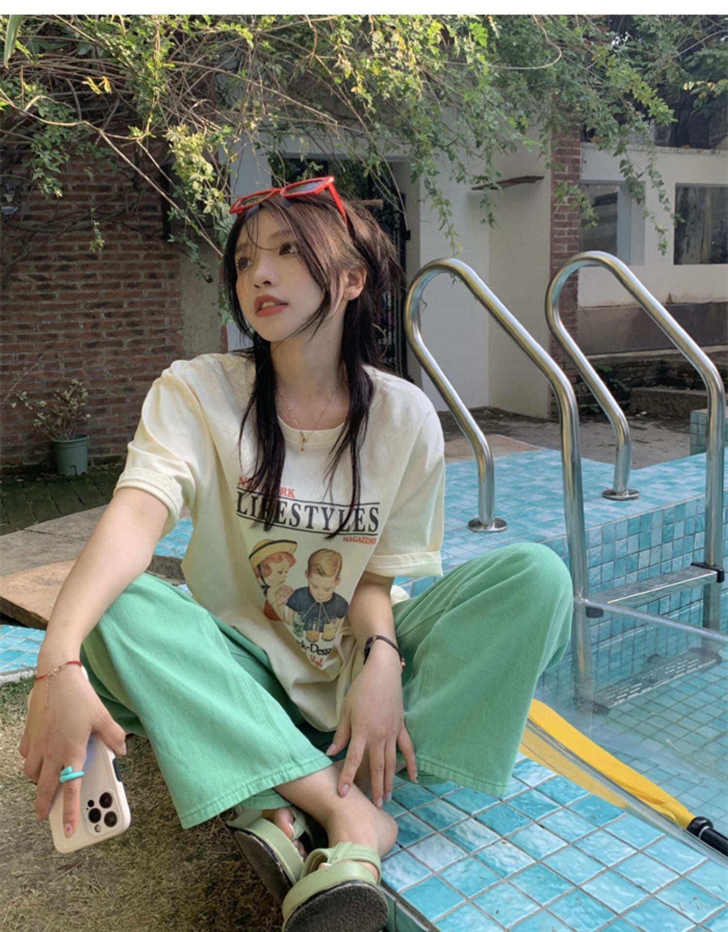 【韓国通販 dgo】2colorsプリントTシャツ シミラールック アイボリー/ホワイト(M2604)