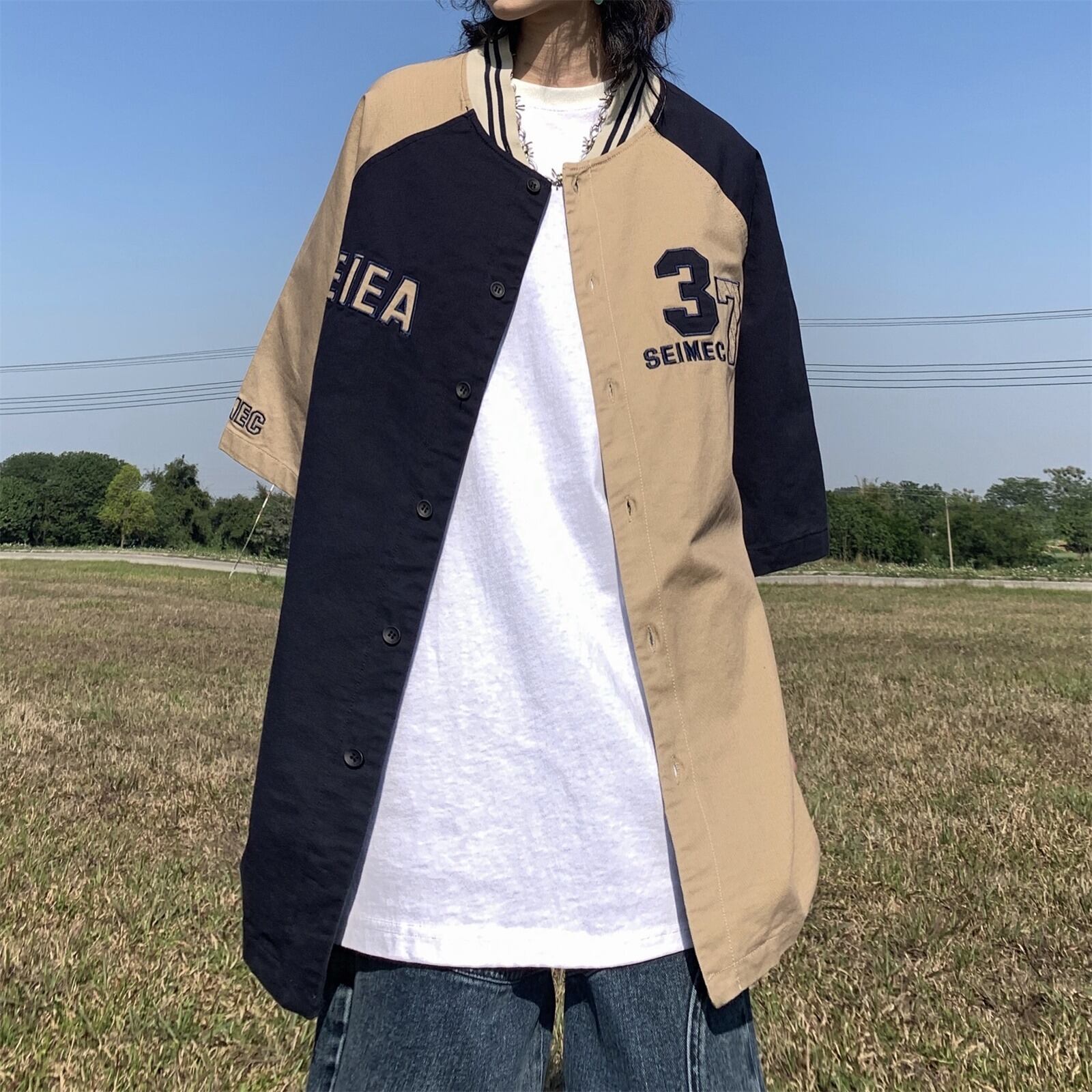 【韓国通販 dgo】バイカラーナンバーロゴシャツジャケット ネイビー(M2608)気分はジャケット!