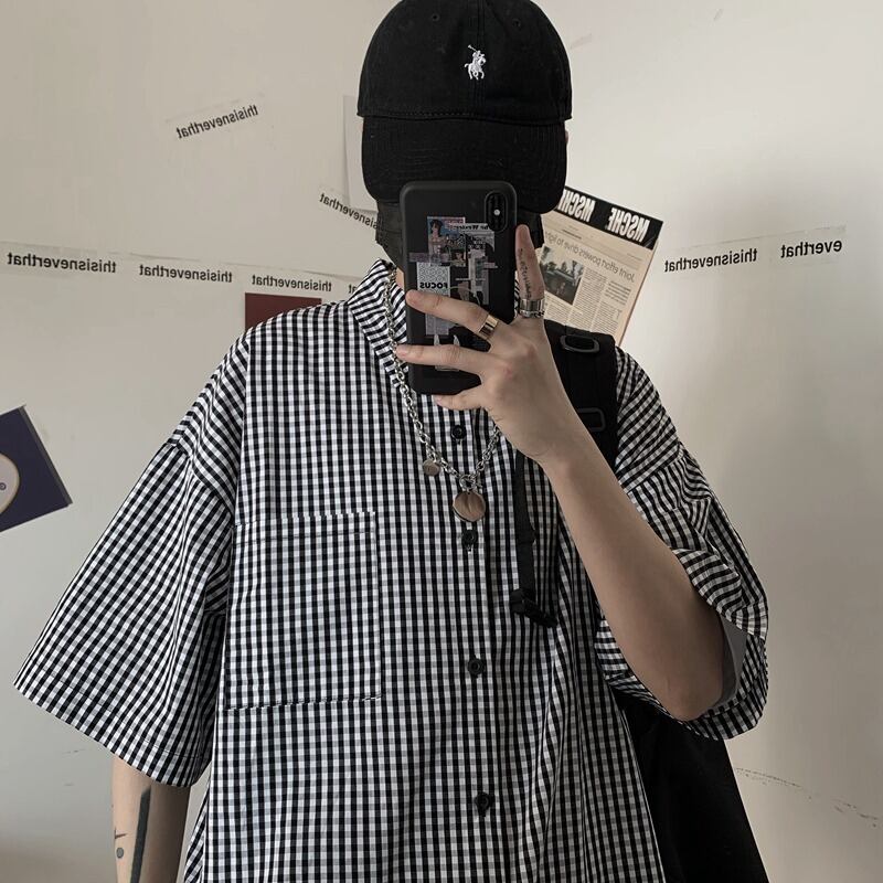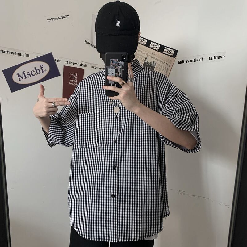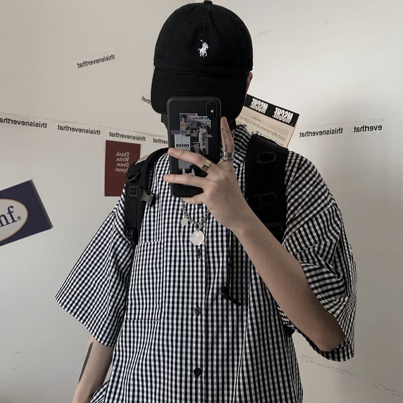 【韓国通販 dgo】レトロチェック柄ハーフスリーブシャツ ブラック(M2613)センス溢れるファッションitem