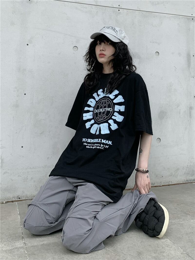 【韓国通販 dgo】ロゴプリントTシャツ ブラック(M2554)