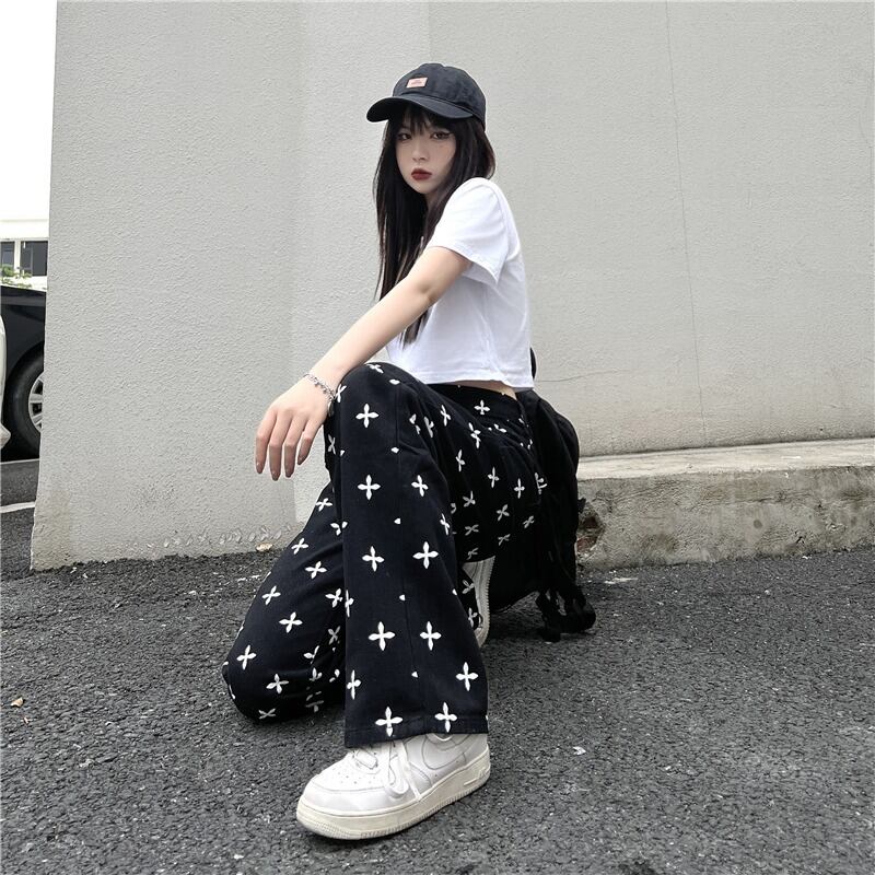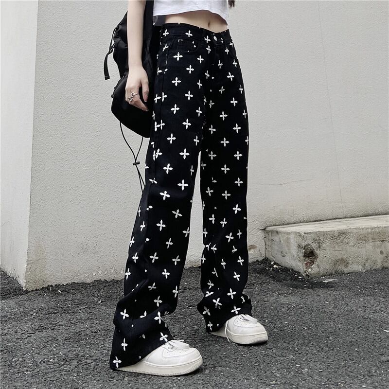 【韓国通販 dgo】ワイドレッグ総柄サマーパンツ ブラック(M2564)