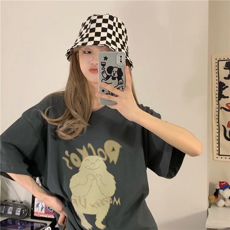 【韓国通販 dgo】オーバーサイズキャラクタープリントTシャツ グレー(M2574)