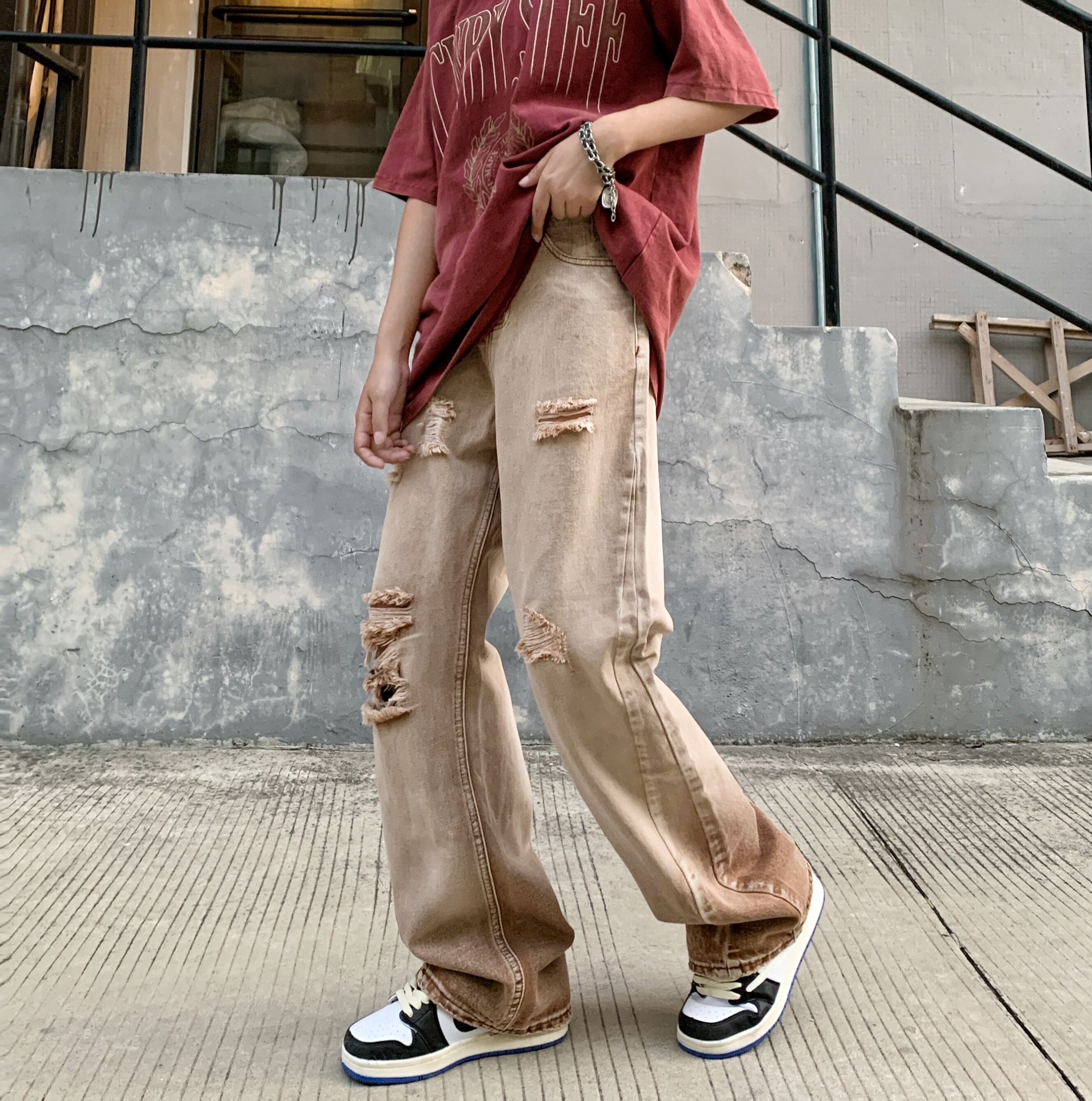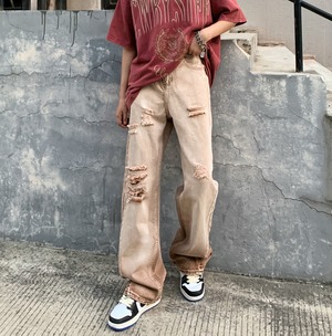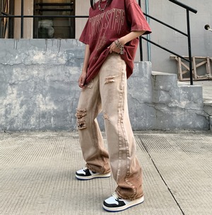 【韓国通販 dgo】アメリカンレトロダメージストレートジーンズ ブラウン(M2575)センス溢れるファッションitem