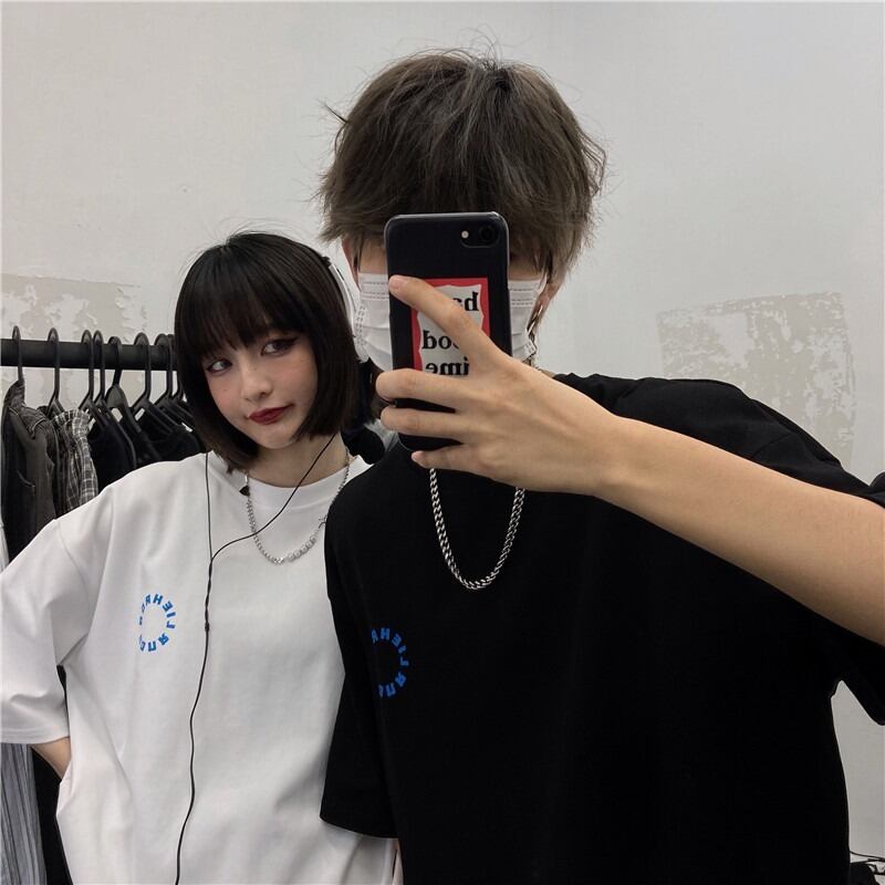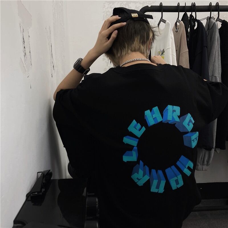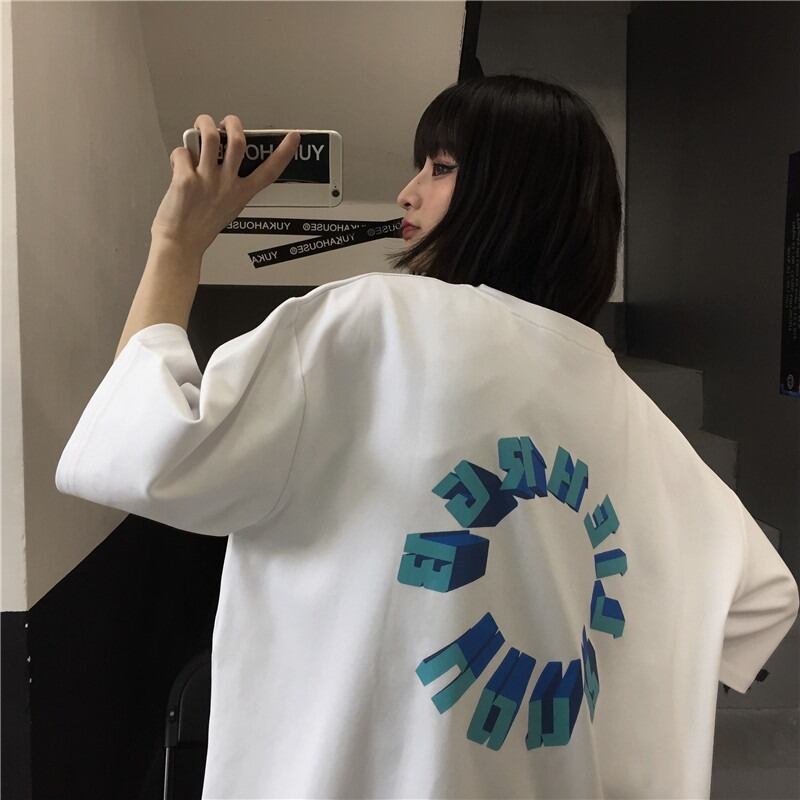 【韓国通販 dgo】2colors ユニセックス サークルアルファベットロゴTシャツ ホワイト/ブラック(M2584)