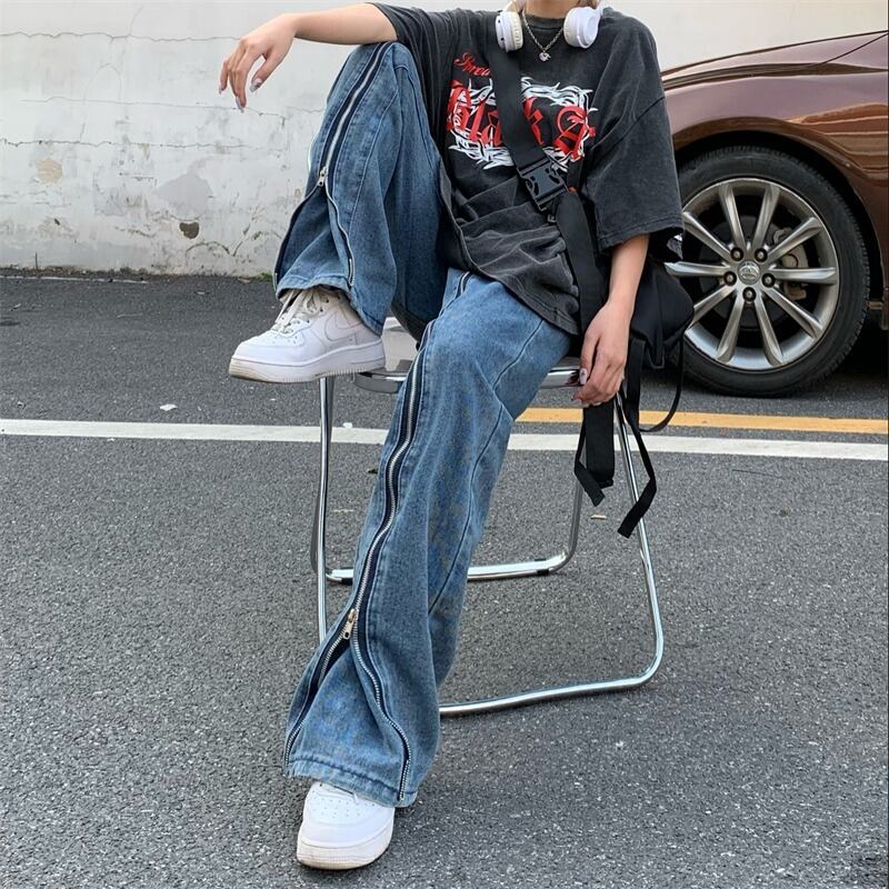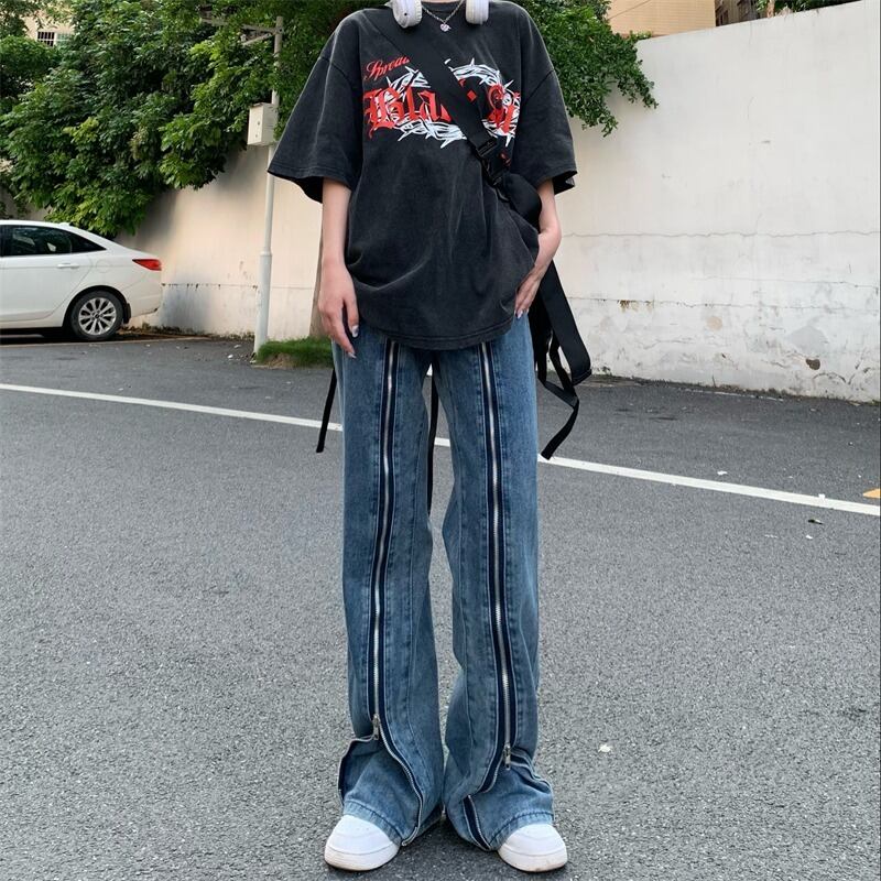 【韓国通販 dgo】ロングジップデニムパンツ ブルー(M2579)トレンドアイテム