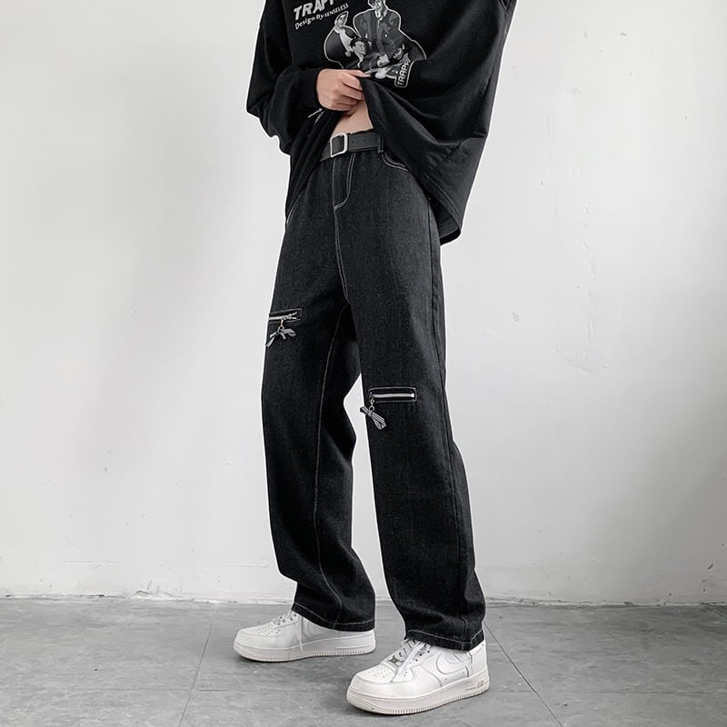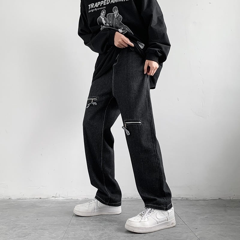 【韓国通販 dgo】ストレートジッパーデザインジーンズ ブラック(M2570)トレンドアイテム