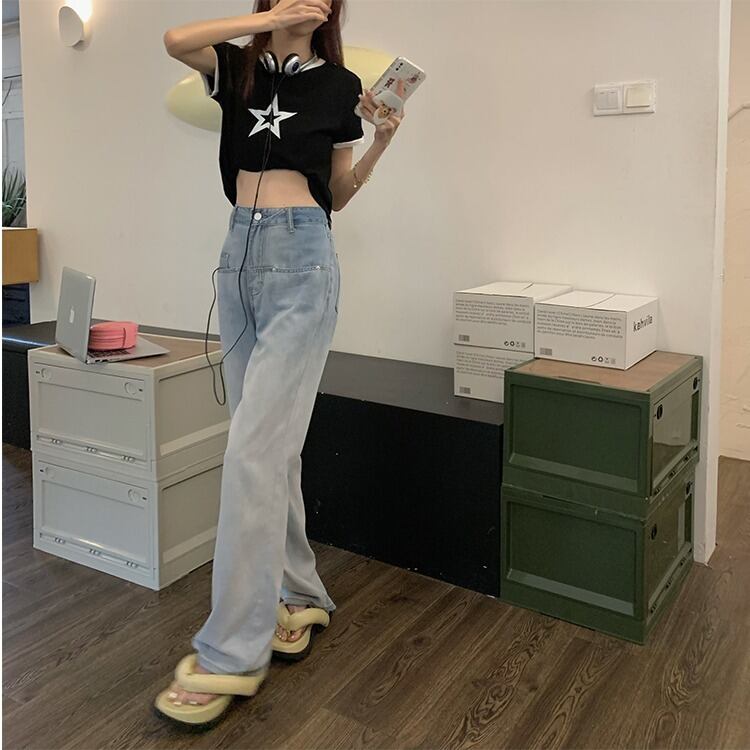 【韓国通販 dgo】ハイウエストグラデーションサマージーンズ ブルー(W2567)トレンドアイテム