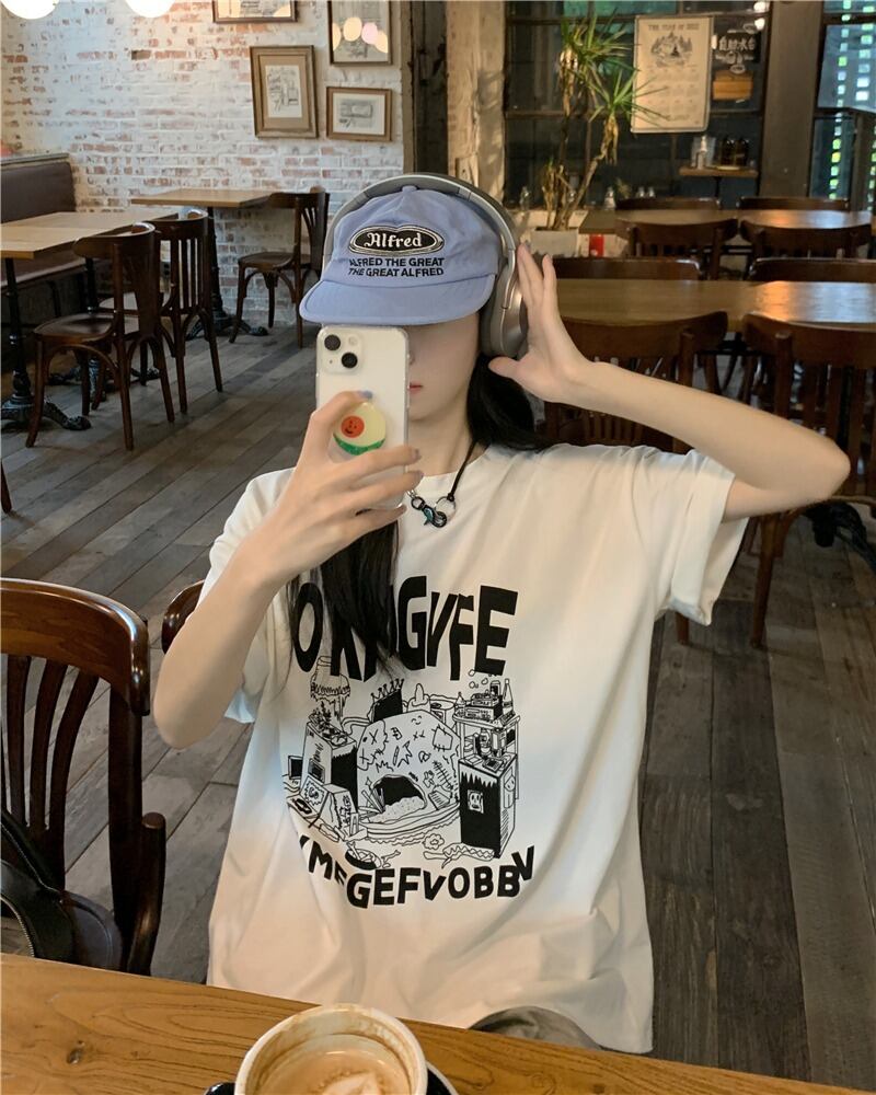 【韓国通販 dgo】レトロオーバーサイズプリントTシャツ ホワイト(W2566)センス溢れるファッションitem