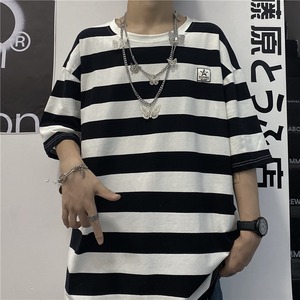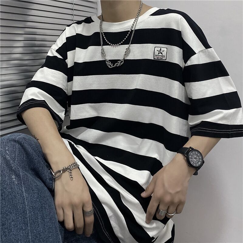 【韓国通販 dgo】ドロップショルダーストライプサマーTシャツ ホワイト&ブラック(M2564)