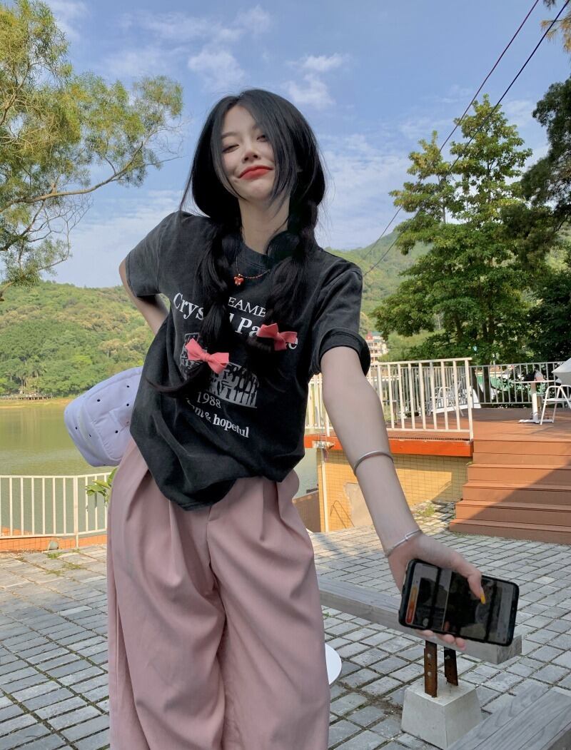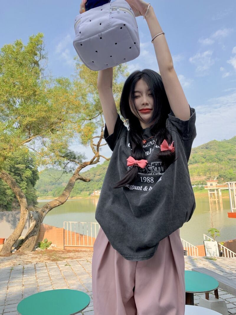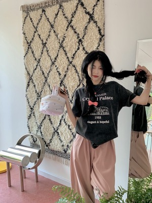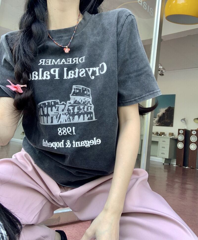【韓国通販 dgo】クルーネックアルファベットプリントサマーTシャツ グレー(W2561)