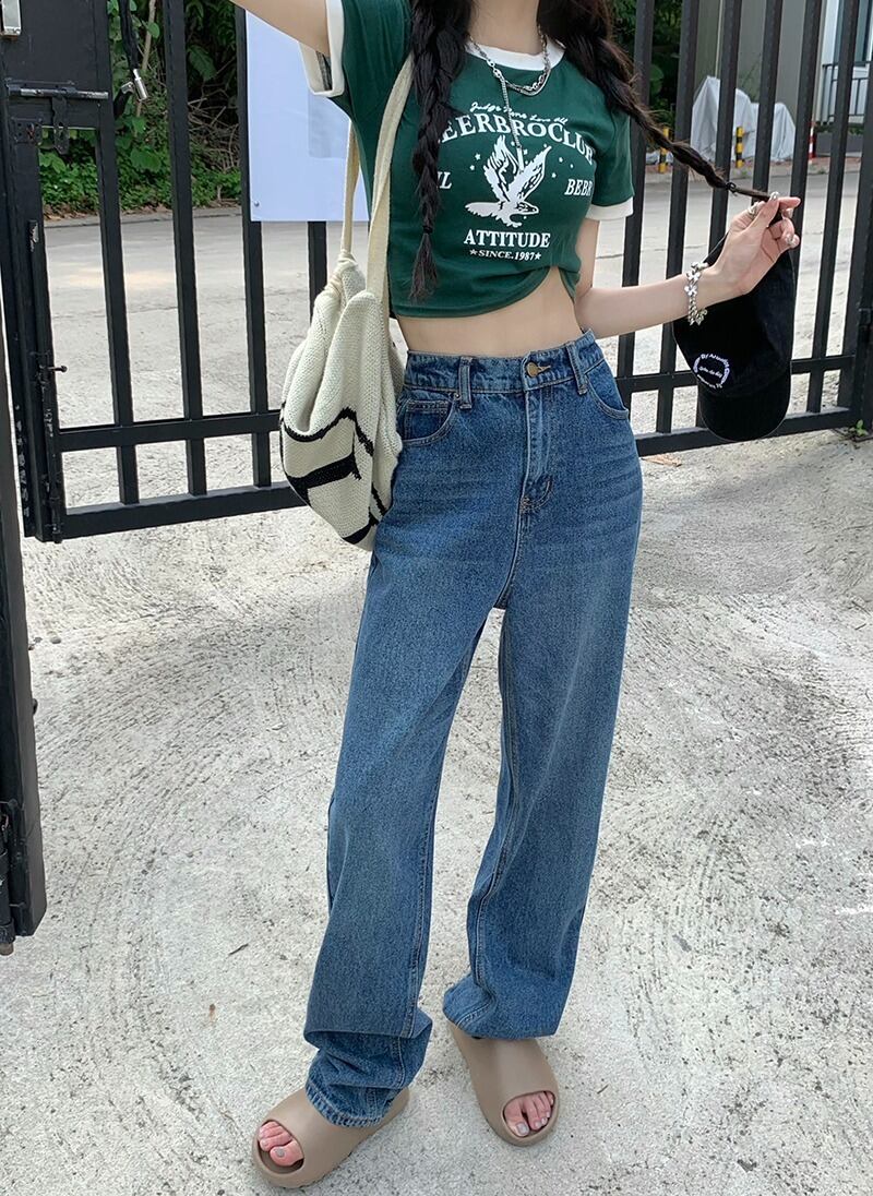 【韓国通販 dgo】2colors ハイウエストモップパンツ ネイビー/ライトブルー(W2611)