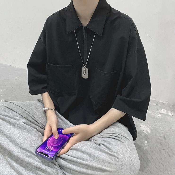 【韓国通販 dgo】3colors ハーフジップトップス アーミーグリーン/ブラック/ネイビー(M2660)ハーフジップでマンネリ脱出!