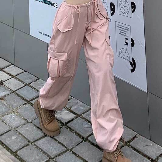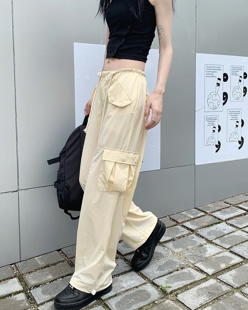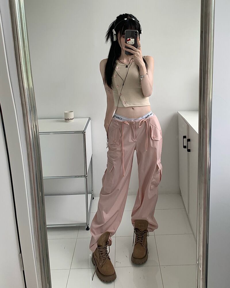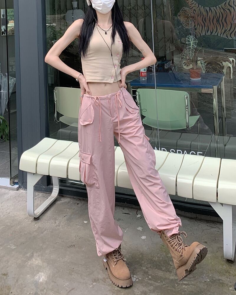 【韓国通販 dgo】2colors ハイウエストカーゴパンツ ピンク/アイボリー(W2657)センス溢れるファッションitem