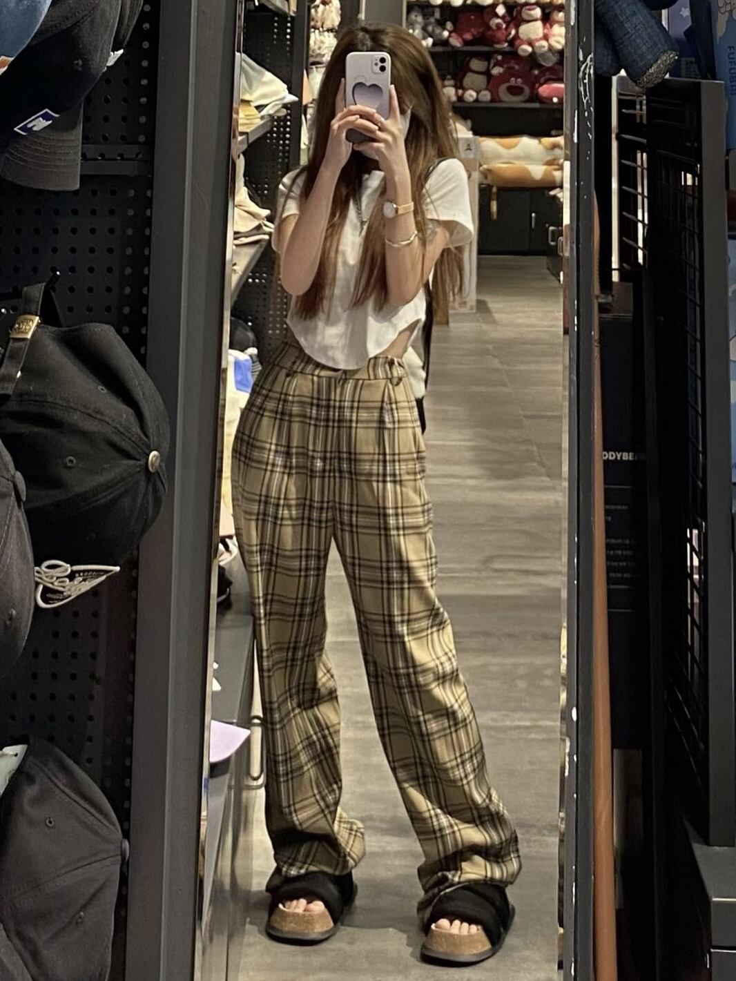 【韓国通販 dgo】ハイウエストチェック柄サマーパンツ(W2647)トレンドアイテム