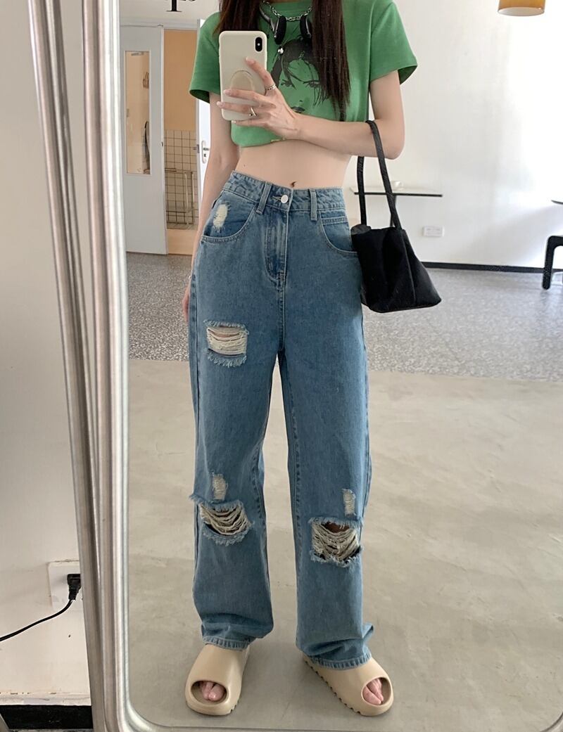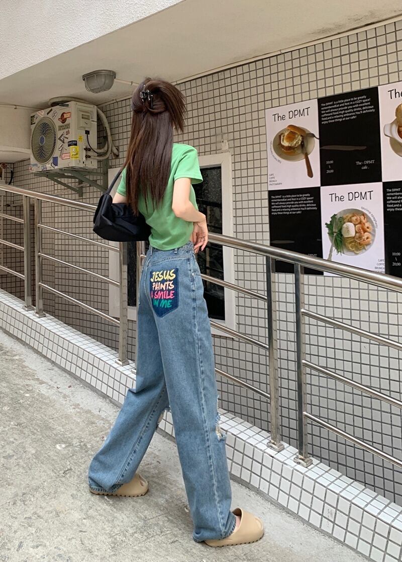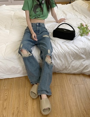 【韓国通販 dgo】ハイウエストワイドレッグジーンズ ブルー(W2642)