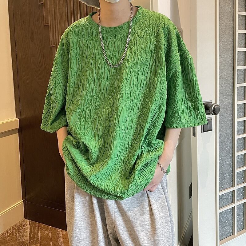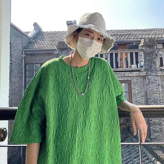 【韓国通販 dgo】3colors オーバーサイズプリーツTシャツ ホワイト/グリーン/ブラック(M2641)