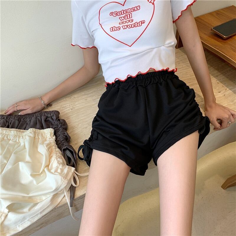 【韓国通販 dgo】3colors ドローストリングショートパンツ ダークグレー/アイボリー/ブラック(W2638)
