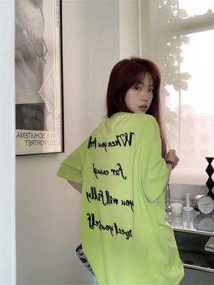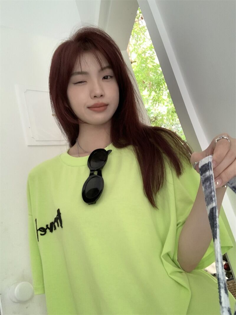 【韓国通販 dgo】2colors 英レターバック刺繍Tシャツ アップルグリーン/ホワイト(W2694)