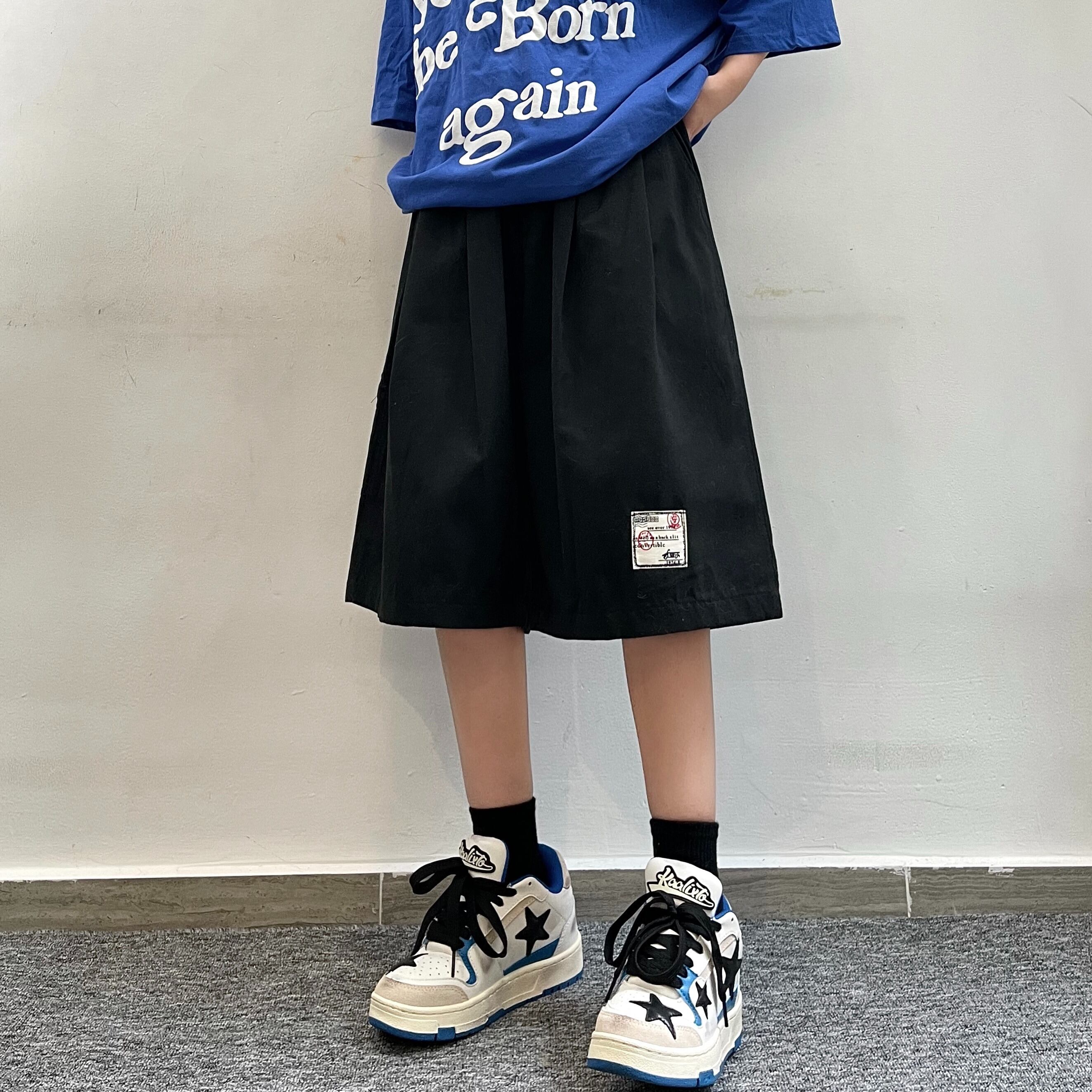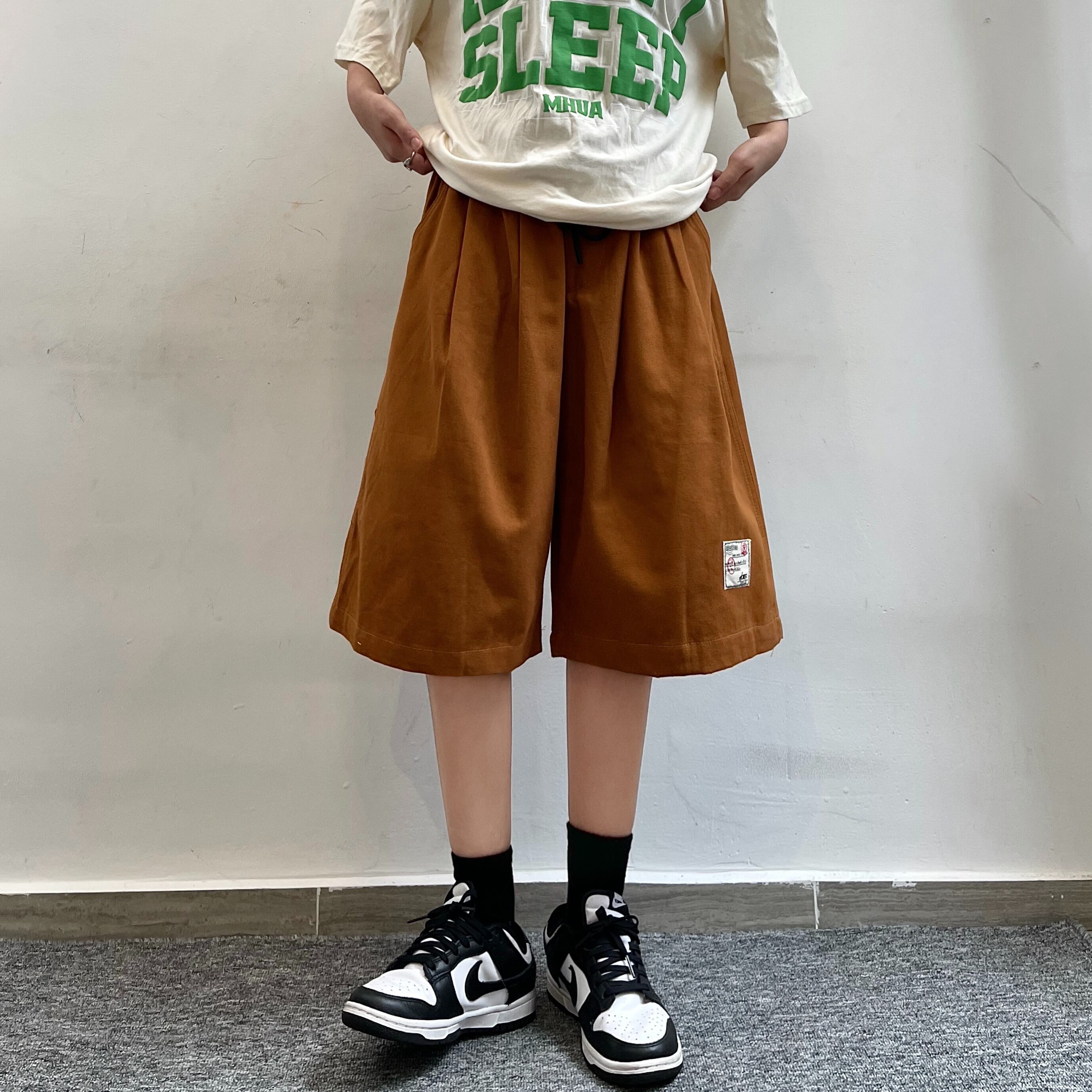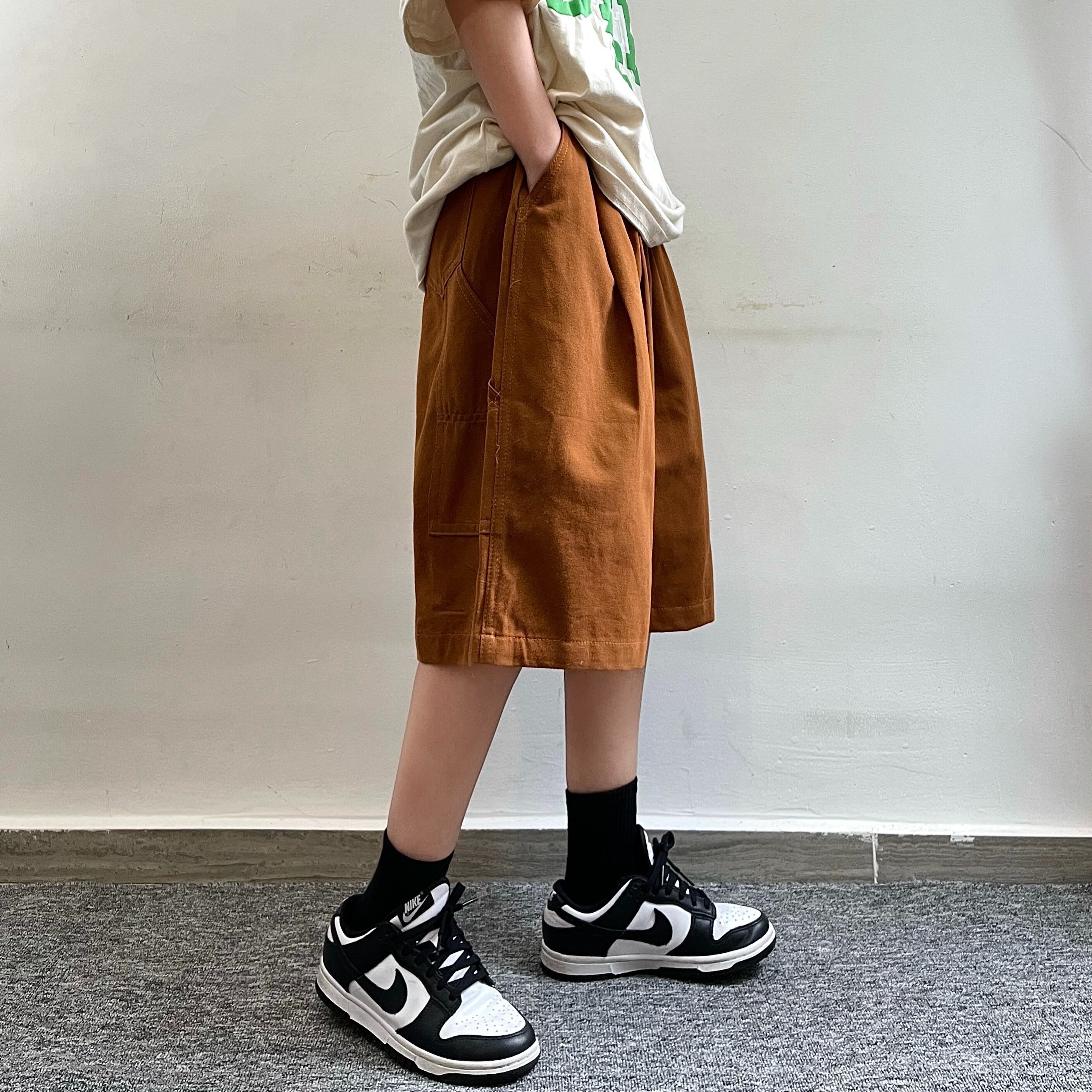【韓国通販 dgo】2colors ユニセックス ワンポイントステッチハーフパンツ ブラック/ブラウン(M2691)