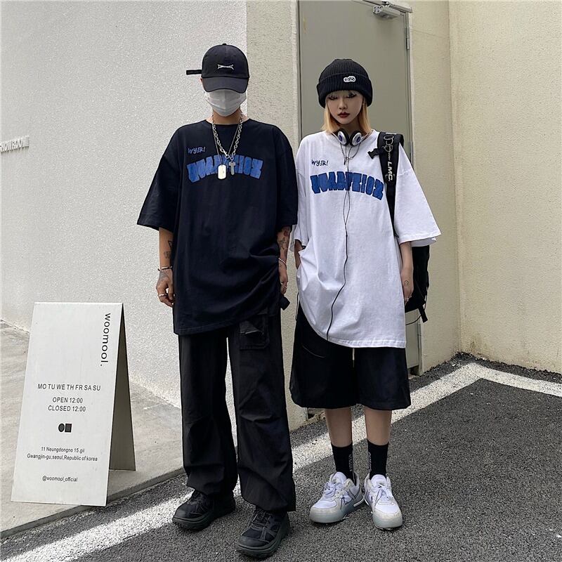 【韓国通販 dgo】2colors ユニセックスオーバーサイズ英レタープリントTシャツ ホワイト/ブラック(M2686)センス溢れるファッションitem