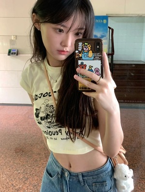 【韓国通販 dgo】プリントクロップドTシャツ アイボリー(W2682)