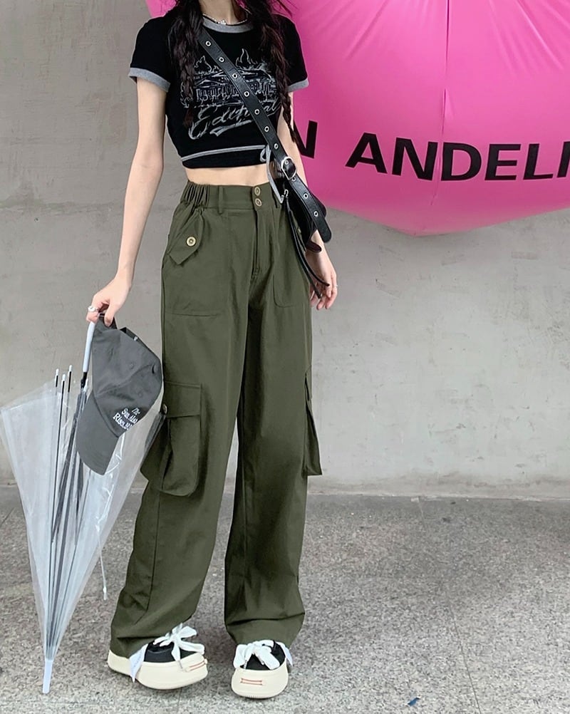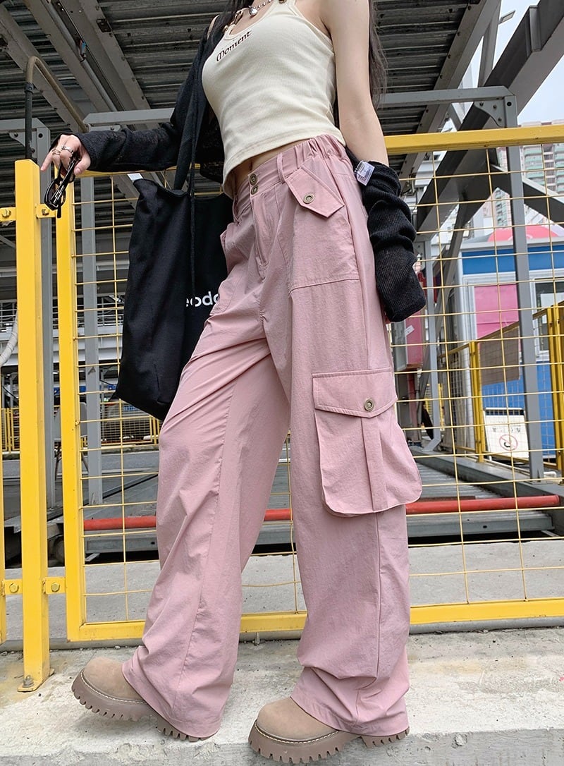 【韓国通販 dgo】3colors ハイウエストカーゴパンツ ピンク/アイボリー/アーミーグリーン(W2733)センス溢れるファッションitem