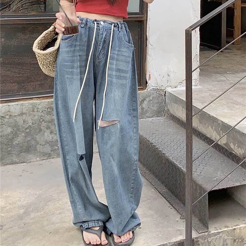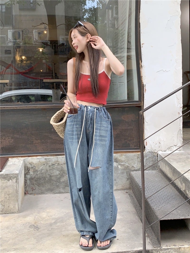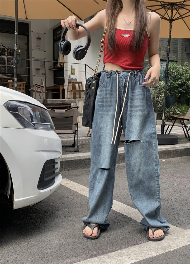 【韓国通販 dgo】ハイウエストストレートダメージジーンズ(W2727)トレンドアイテム