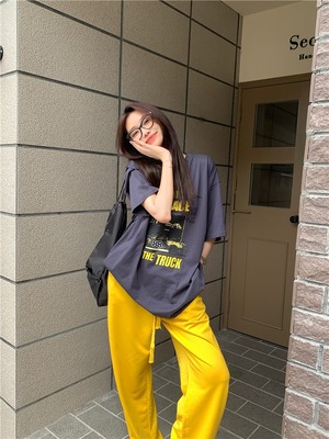 【韓国通販 dgo】オーバーサイズプリントTシャツ ダークグレー(W2712)