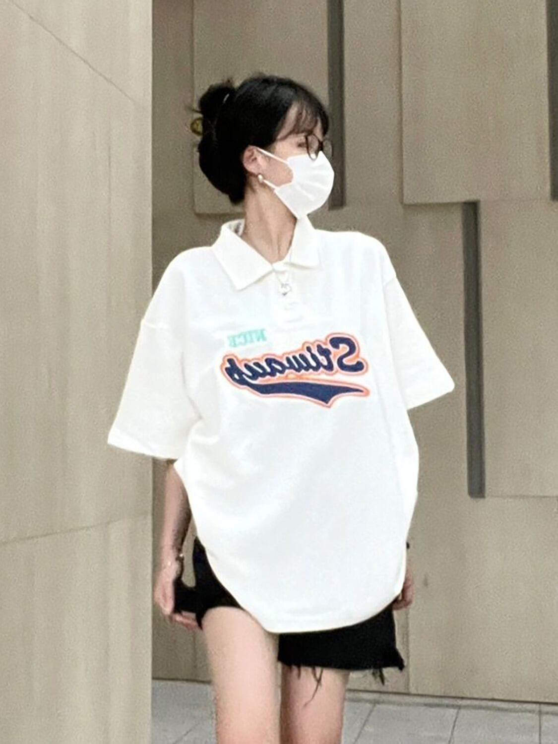 【韓国通販 dgo】英レター刺繍ポロ襟Tシャツ(W2703)センス溢れるファッションitem アイボリー(W2703)センス溢れるファッションitem