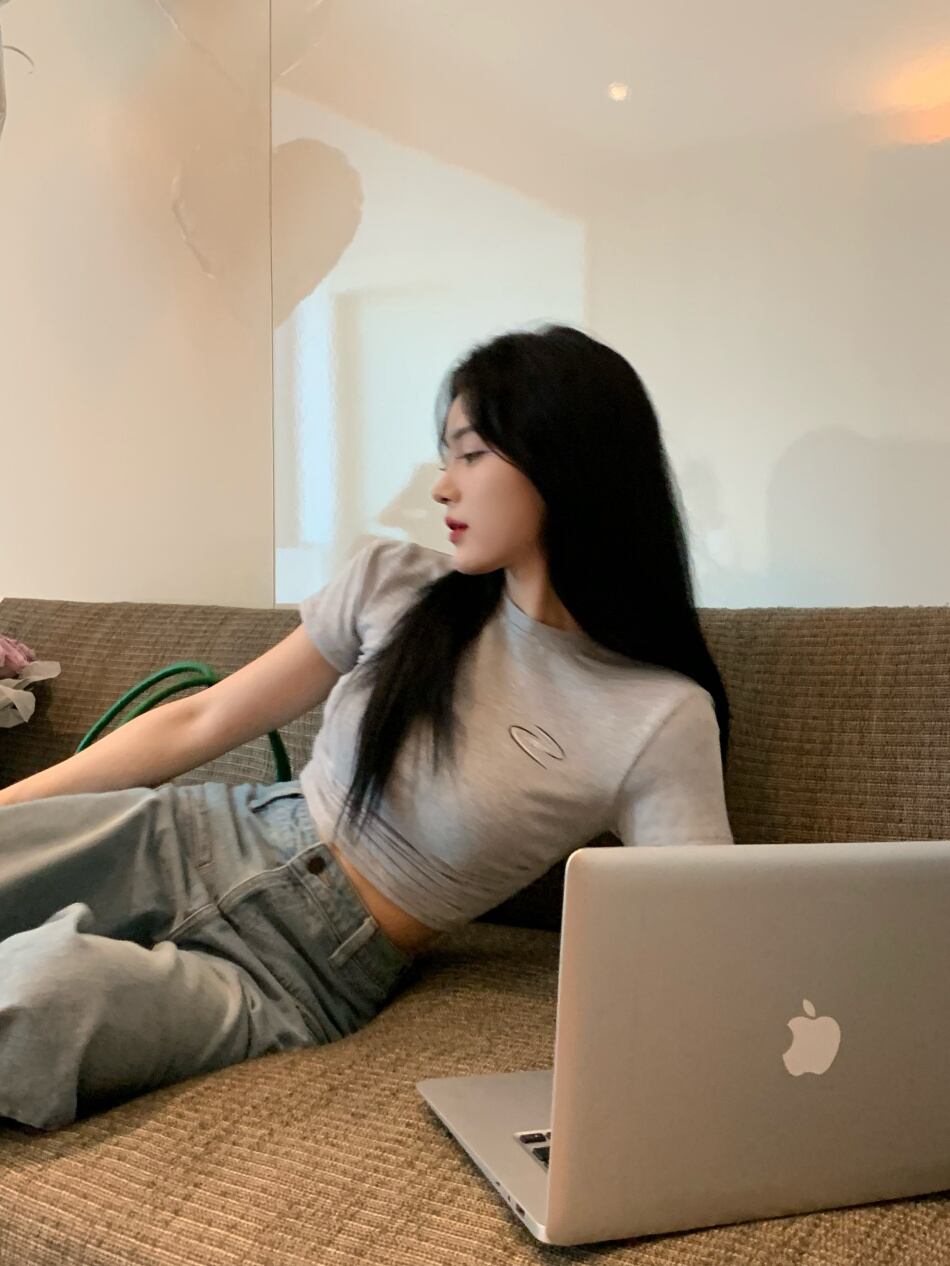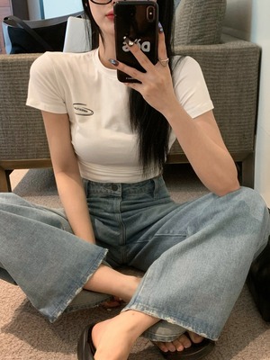 【韓国通販 dgo】5colors クロップドTシャツ ホワイト/ピンク/レッド/グレー/ブラック(W2769)トレンドアイテム
