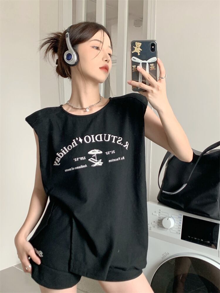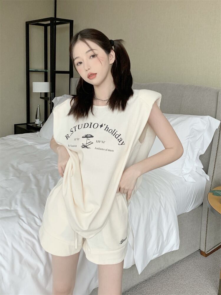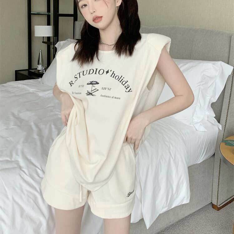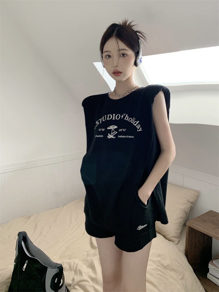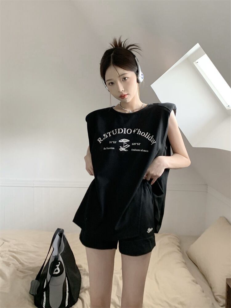 【韓国通販 dgo】2colors スリーブレストップス&ショートパンツ ホワイト/ブラック(W2754)
