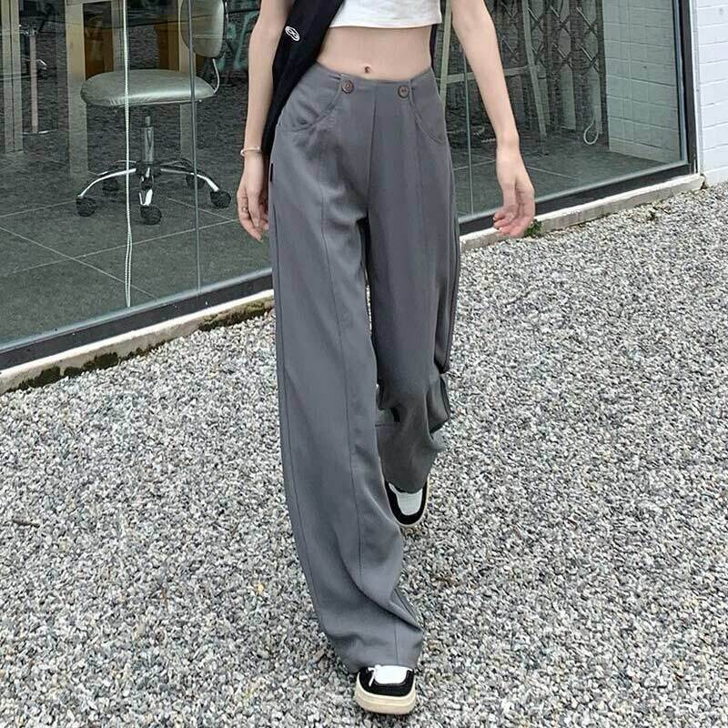【韓国通販 dgo】2colors ハイウエストドレープパンツ グレー/ブラック(W2752)センス溢れるファッションitem