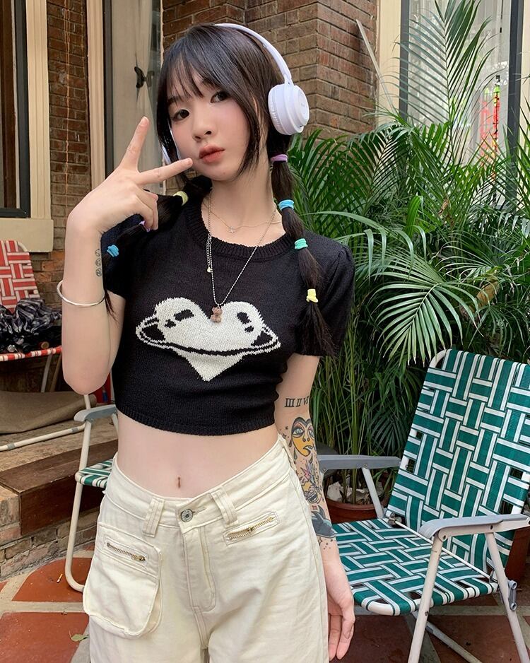 【韓国通販 dgo】2colors クロップドニットT クリーミーホワイト/ブラック(W2744)センス溢れるファッションitem