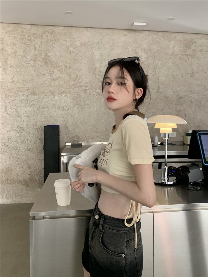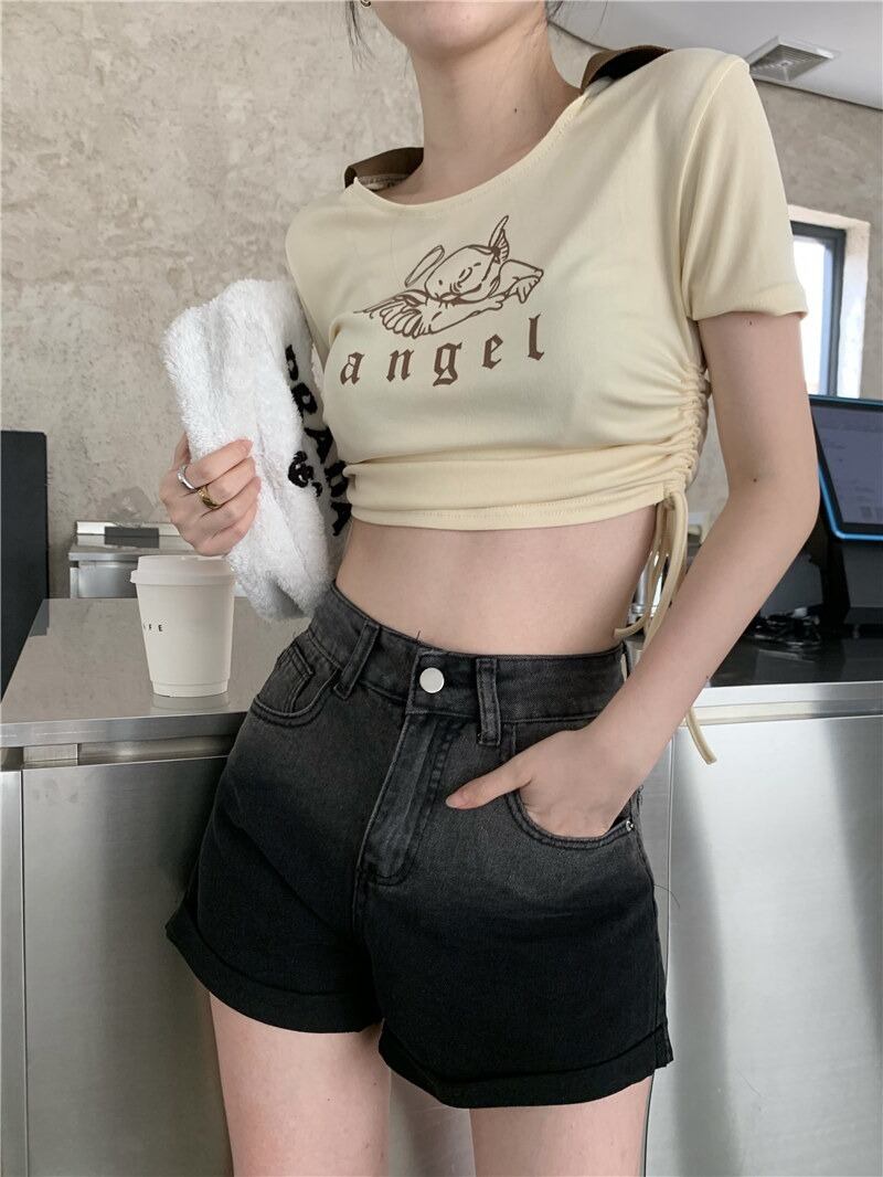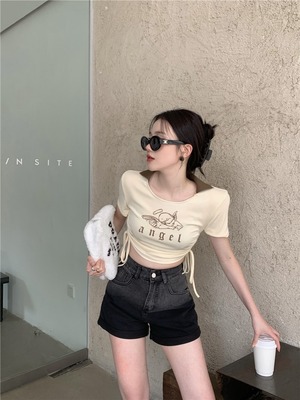 【韓国通販 dgo】ドローストリングクロップドT(W2742)