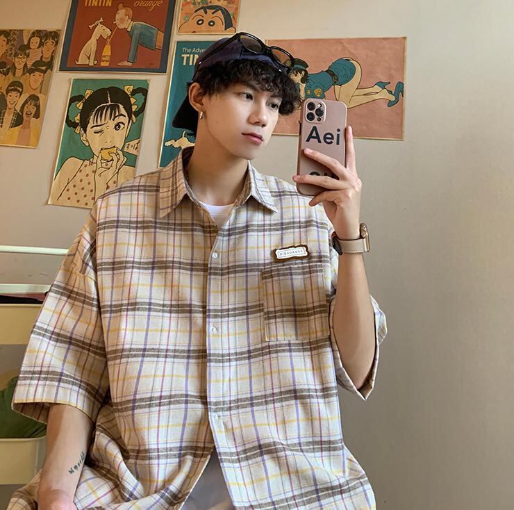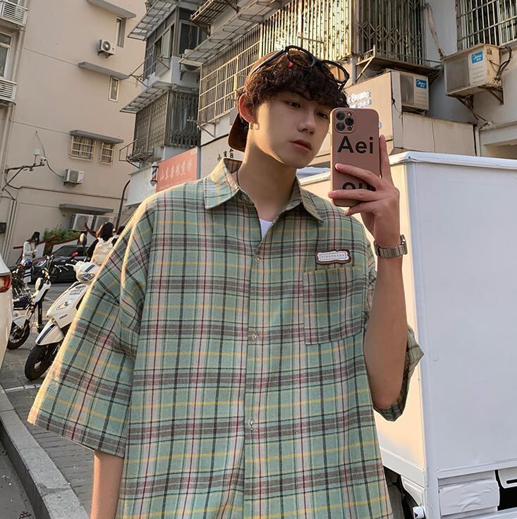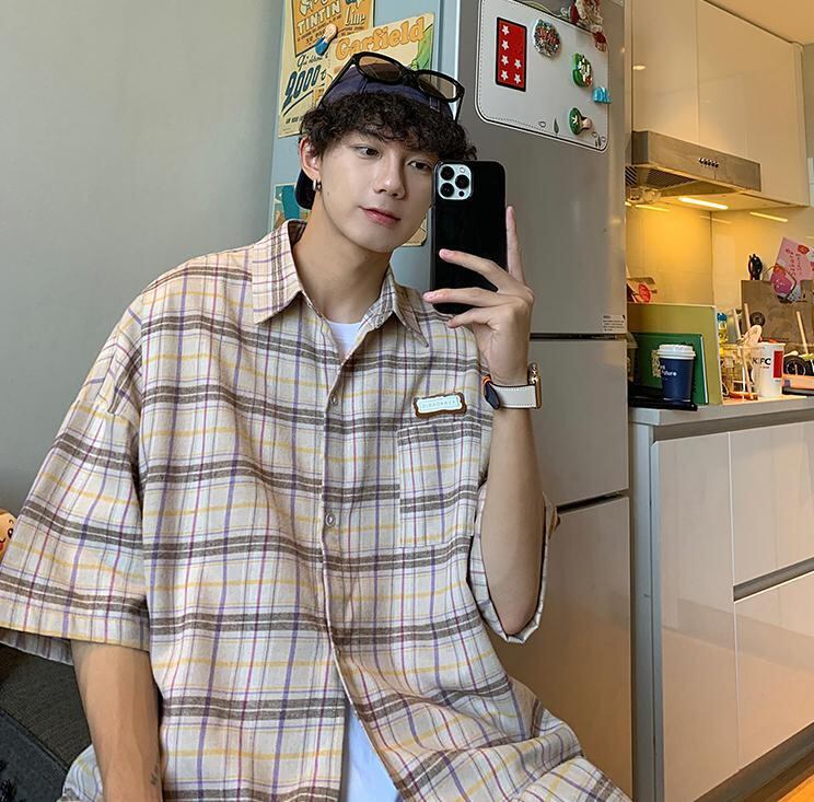 【韓国通販 dgo】3colors チェック柄サマーシャツ ベージュ/ブルー/グリーン(M2740)トレンドアイテム