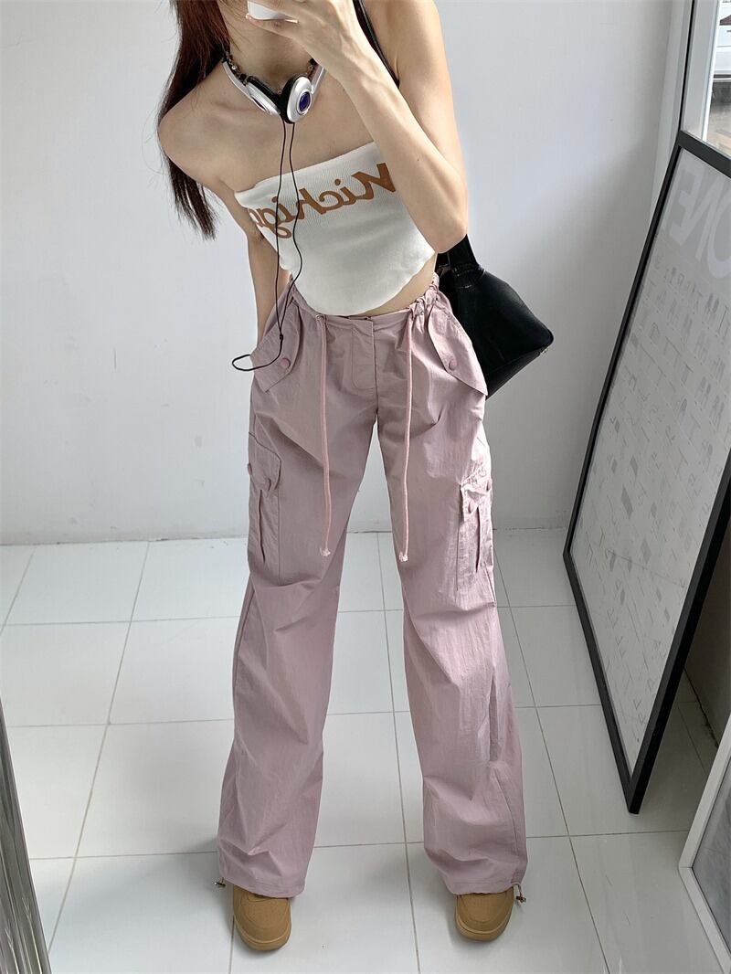 【韓国通販 dgo】2colors ハイウエストサマーカーゴパンツ ブルー/ピンク(W2798)