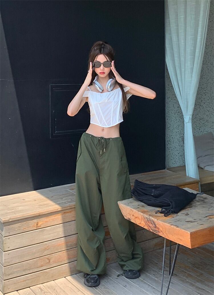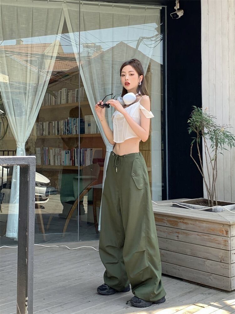 【韓国通販 dgo】ルーズワイドレッグパンツ グリーン(W2793)センス溢れるファッションitem