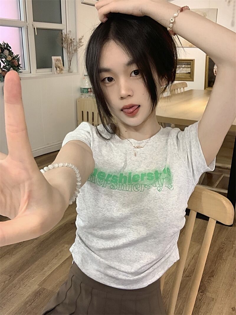 【韓国通販 dgo】レタープリントクロップドTシャツ ライトグレー(W2789)トレンドアイテム
