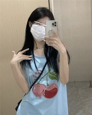 【韓国通販 dgo】3colors オーバーサイズプリントTシャツ ベージュ/ブルー/ブラック(W2788)