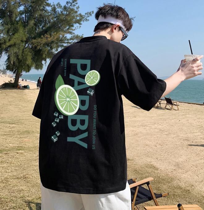 【韓国通販 dgo】7colors ライムプリントサマーTシャツ ホワイト/ブラック/ライトブルー/オレンジ/ライトパープル/ピンク/クラインブルー(M2780)トレンドアイテム