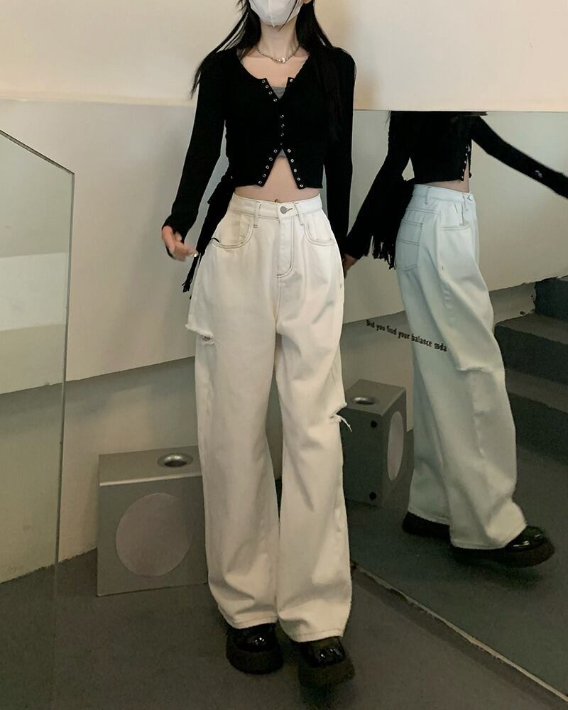【韓国通販 dgo】ハイウエストルーズワイドレッグパンツ ホワイト(W2777)センス溢れるファッションitem