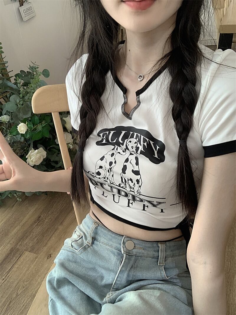 【韓国通販 dgo】ドッグプリントクロップドT ホワイト(W2828)センス溢れるファッションitem