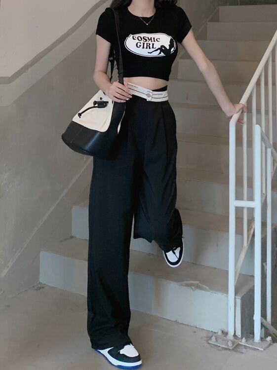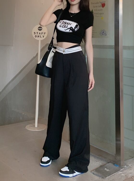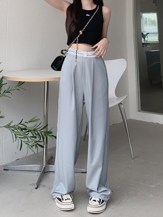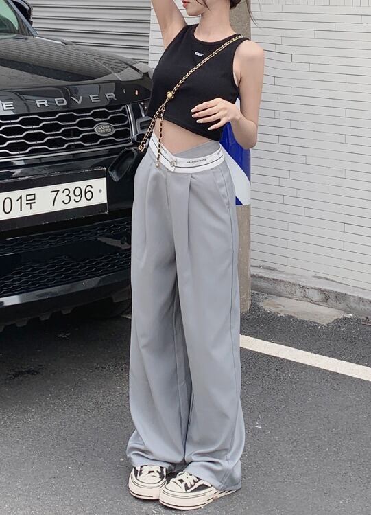 【韓国通販 dgo】2colors ウエストデザインリラックスドレープパンツ グレー/ブラック(W2827)センス溢れるファッションitem